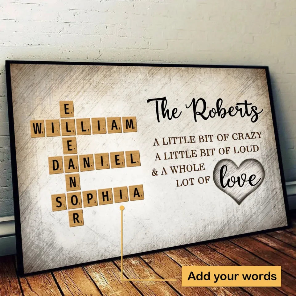 Available Product: Family Whole Lot Of Love Crossword Puzzle Art - Captured In A Moment, Cherished For A Lifetime Personalized Poster