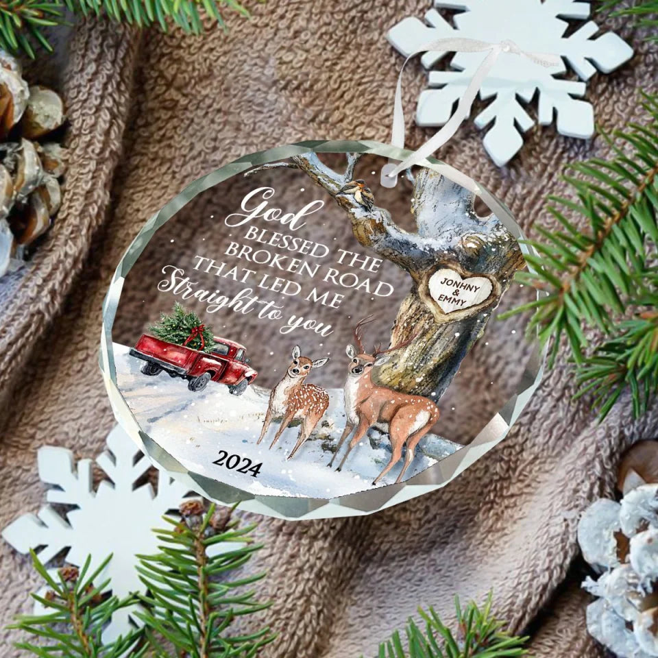 Available Product: God Blessed The Broken Road – Gift For Couple Personalized Christmas Glass Ornament Holiday Decoration