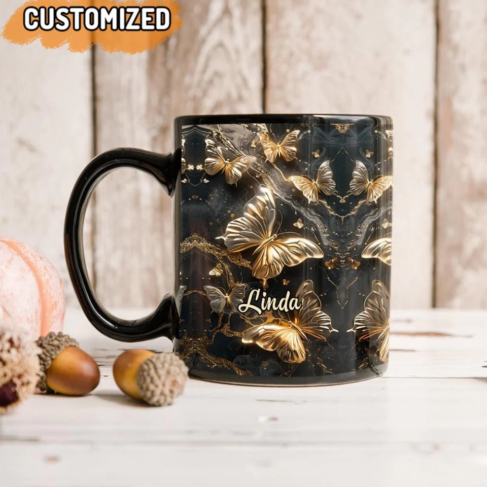 Available Product: Gold And Silver Butterflies Personalized Name Mug Customizable Drinkware For Butterfly Lovers