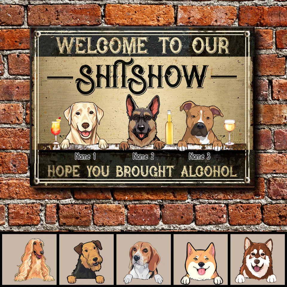 Welcome To Our Shitshow Metal Welcome Sign, Gifts For Dog Lovers, Hope You Brought Alcohol Vintage Signs