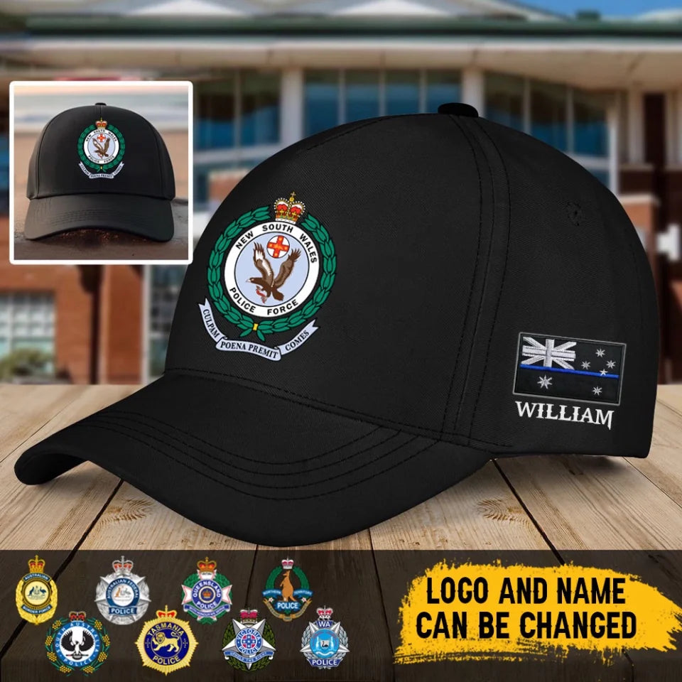Available Product: Personalized Australian Police Branch Logo & Name Black Cap