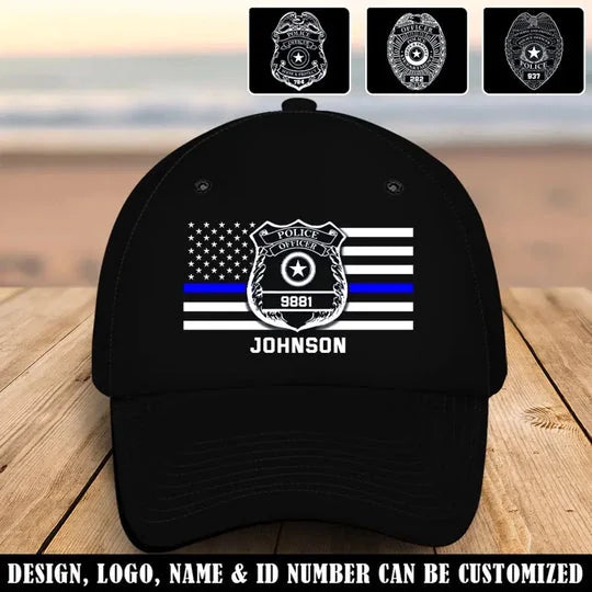 Personalized US Police Badge US Police Flag Custom Name & ID Black Cap 2D Printed