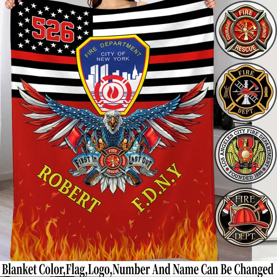 US Firefighter Blanket Gift For Firefighter Custom Department Blanket